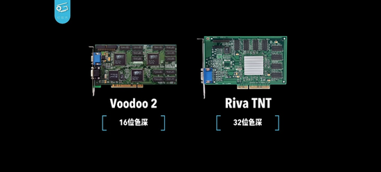 1998 年,英伟达推出 TNT,与 Voodoo2 竞争市场。相比 riva 128,TNT 像素渲染管线增加到了两根,与此同时,TNT 也加入了 32 位色深的支持,相比同期只支持 16 位的 Voodoo2,性能大幅提升,成为当时速度最快的 3D 加速卡。